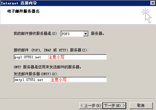 第六步:重點(diǎn)必需100%一樣。此處為郵局服務(wù)器