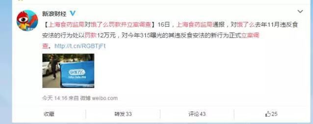 還拿倒運悲催的餓了么為例,新浪新聞對此進行了查詢,發現有七成網友反應,會影響對餓了么的使用,并且該公司還被處罰了12萬元。